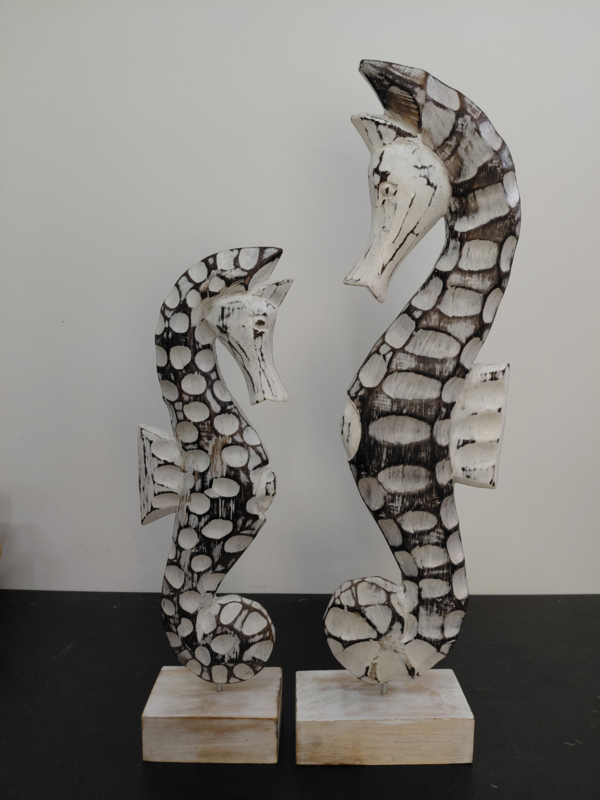 Zeepaardjes set hoogte grootste zeepaard 45 cm. Hoogte kleine zeepaard 35 cm.
